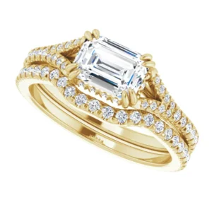 14K Yellow Emerald 1/3 CTW Natural Diamond Semi-Set French-Set Engagement Ring